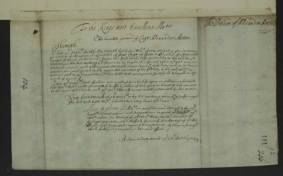 The petition of Captain Alexander Aston, royalist officer, June 1660